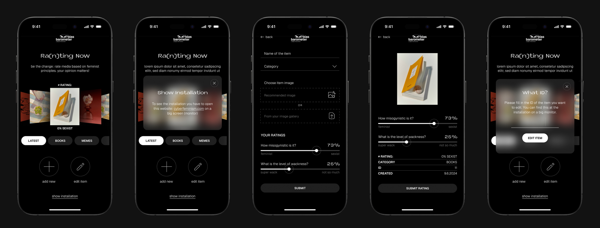 In this context, the ‘Bias Barometer’ was developed – a digital intervention operating at the intersection of feminism and technology. Driven by a passion for feminism and personal experience as a woman in coding, and inspired by the cyberfeminism of the 1990s, this project aimed to create an interactive platform. On this platform, media such as memes, books, TV shows, famous people, and brands were evaluated and visualised through the lens of feminist principles. The work delved into the historical development of cyberfeminism and the role of women in coding to foster understanding and awareness of gender equality in the digital space.