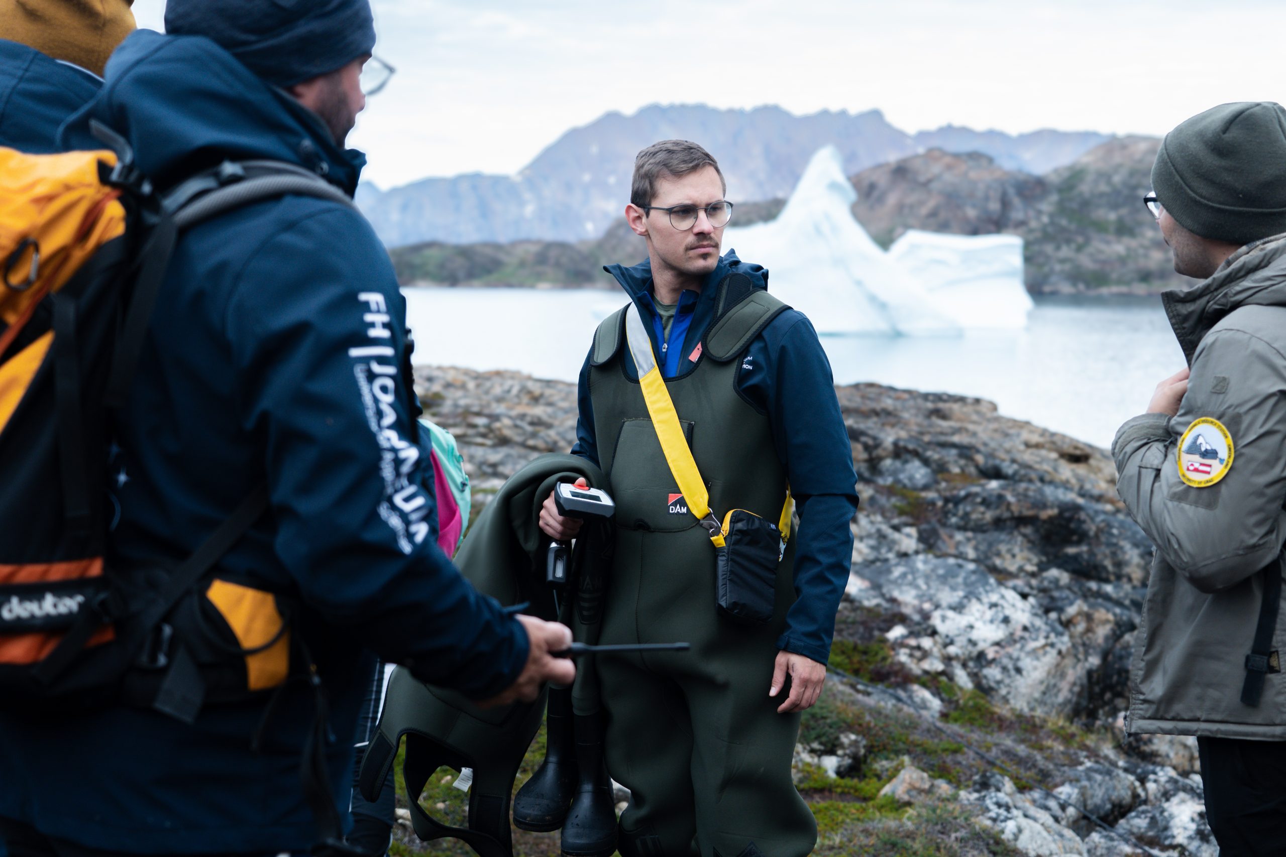 Mit dem Sommersemester 2025 wurde es dann so richtig ernst: Eingebettet in die Lehrveranstaltung „Arctic Technology“ wurden die Teammitglieder einerseits auf die Expedition vorbereitet und waren andererseits intensiv in den Planungs- und Organisationsprozess eingebunden. Und natürlich erarbeitete jede:r Studierende seinen:ihren fachspezifischen Use Case für die Umsetzung vor Ort. Nach Monaten der Vorbereitung ging es für das AET schließlich nach Grönland, wo rund um die Sermilik-Forschungsstation an der Implementierung der Use Cases gearbeitet wurde – ein KI-gestütztes Wildtiererkennungssystem wurde am Gelände installiert, ein Lidar-Sensor am Fuße des Gletschers für Vermessungsvorhaben platziert, mit einem Greifarm die Entnahme verschiedenster Bodenproben getestet, und über allem schwirrten regelmäßig unsere Drohnen als Unterstützung für die Forschungsprojekte aus der Luft. Die Expedition bedeutete für das AET besonders eines: tägliche Arbeit im Feld – sei es am Gletscher, am Strand, im Flussbett oder zwischen Felsbrocken. Das Team war von früh bis spät unterwegs und hatte ein paar besondere Begleiter mit dabei, die es der Zusammenarbeit mit dem Team von BAG TO LIFE zu verdanken hatte.