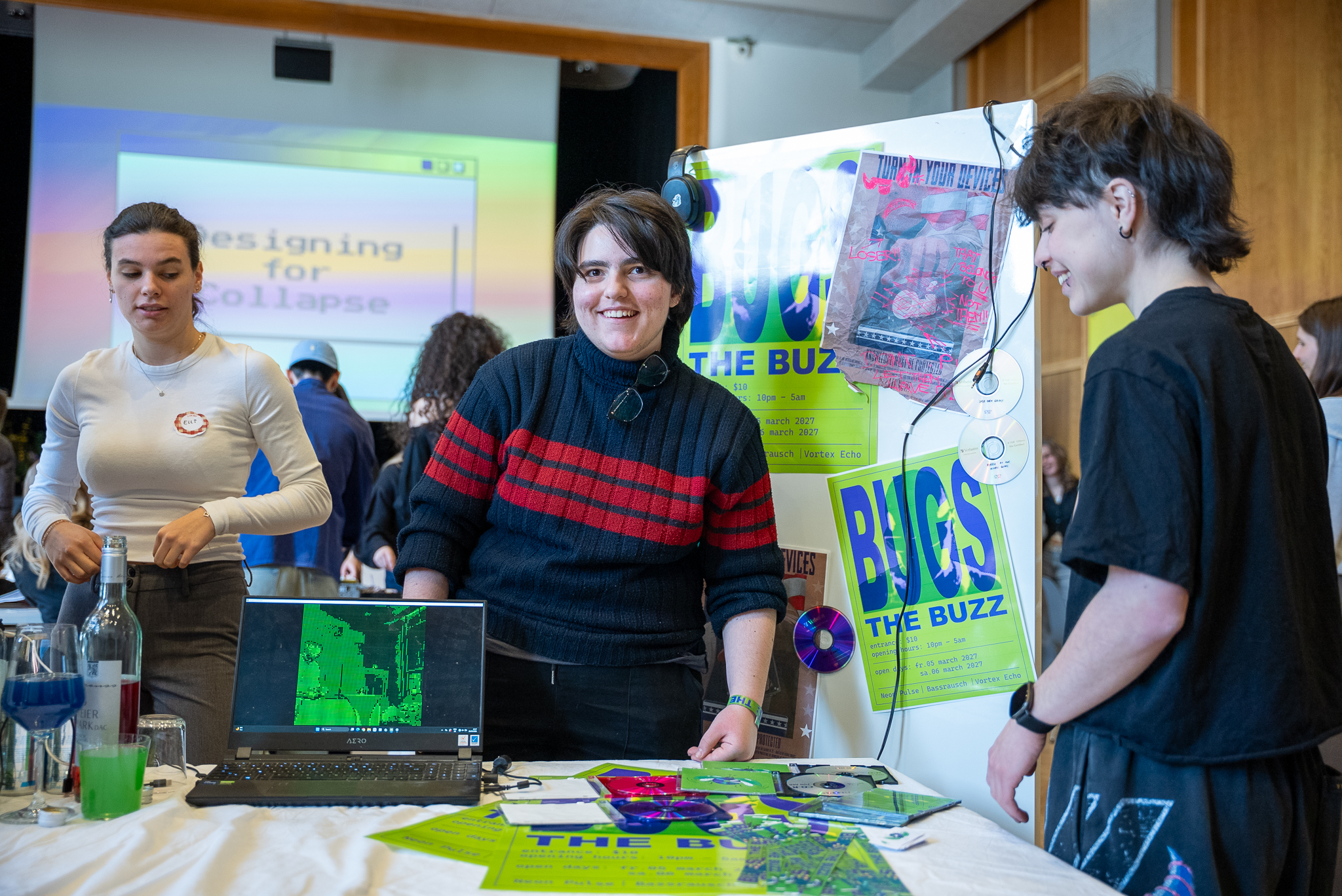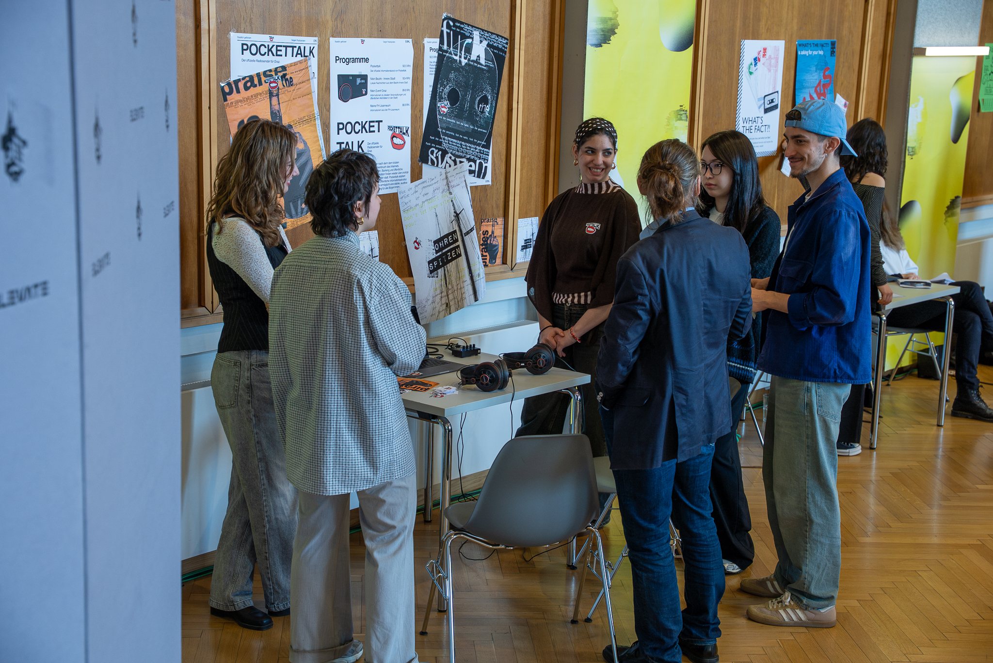 Die Ergebnisse wurden im Heimatsaal öffentlich präsentiert. Als externer Experte gab Designer und Designtheoretiker Harald Gründl den Studierenden Feedback zu ihren Projekten, Artefakten und Präsentationen. Die Bandbreite der Konzepte reichte von Bier-Tauschbörsen und analogen Dating-Formaten über Underground-Datennetzwerke bis hin zu gastronomischen Konzepten rund um Gerüchte, neuen Vernetzungsformen für Eltern sowie politischen Initiativen im Umgang mit Nahrungs- und Informationsknappheit.