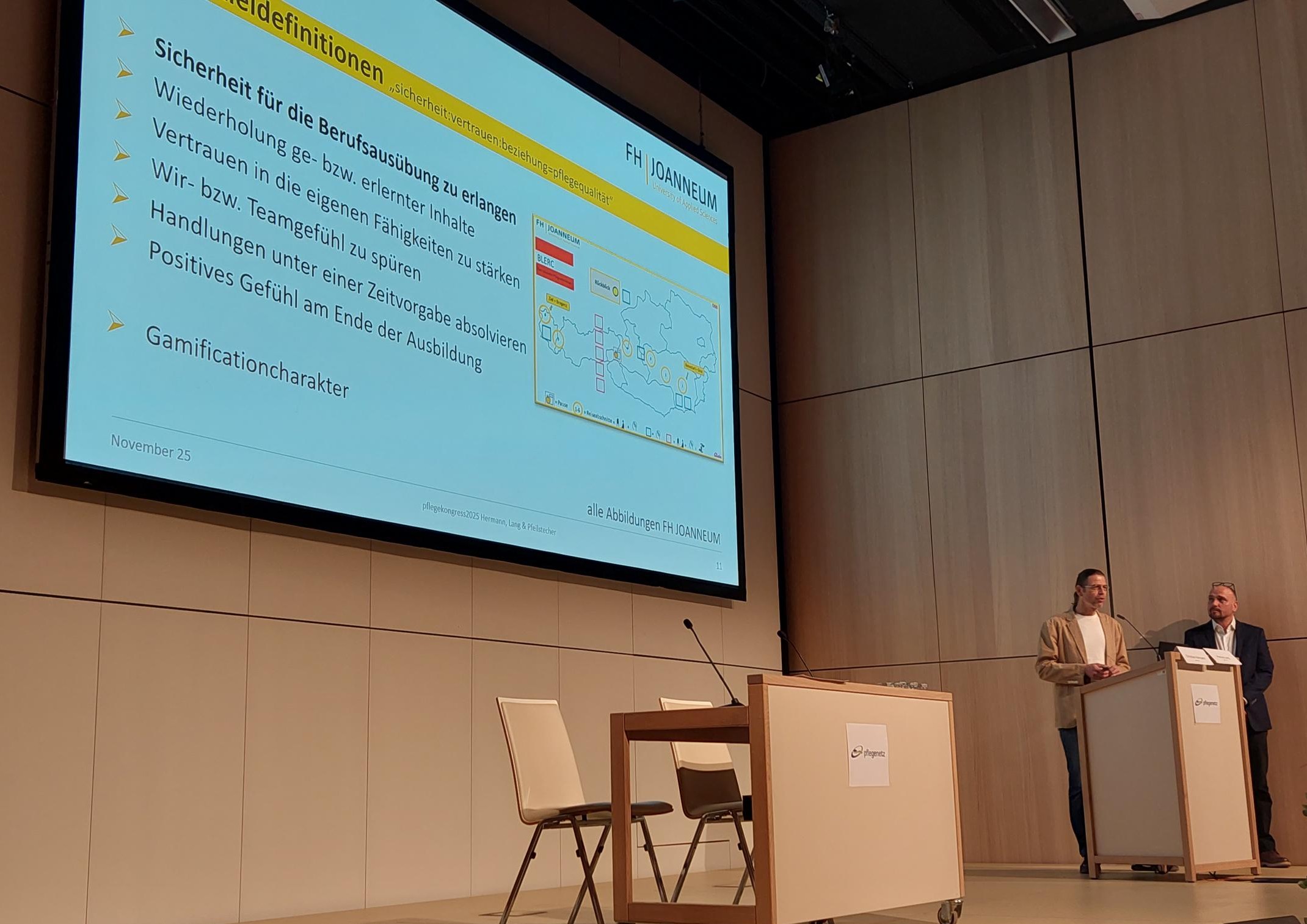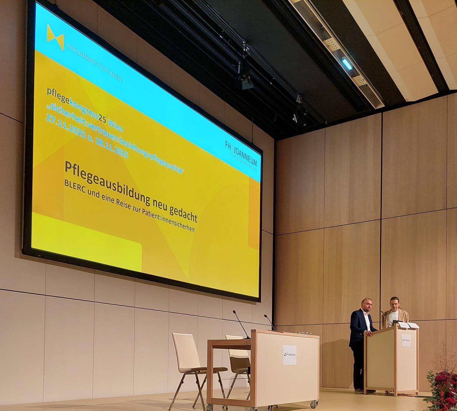 Mit dem ausgezeichneten Posterbeitrag und der Präsentation des BLERC-Konzepts war die FH JOANNEUM durch das Institut Gesundheits- und Krankenpflege in zwei zentralen thematischen Bereichen des Pflegekongresses vertreten und konnte Impulse in den Diskurs zu Vermittlung von fundierten Ergebnissen und Lehrinhalten zum Thema Patient:innensicherheit und Versorgungsstrukturen einbringen.