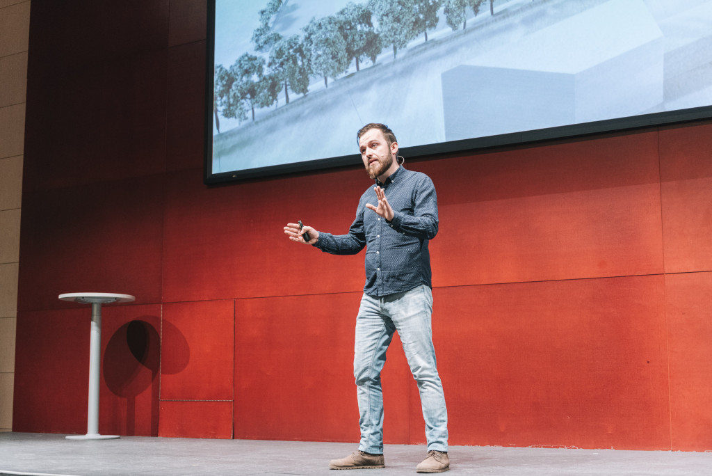 Nenad Savic, wissenschaftlicher Mitarbeiter am Studiengang „Bauplanung und Bauwirtschaft“, spricht in seinem Kurzvortrag über seine Liebe zu Stäben und warum sie die Basis für fast alle Bauwerke sind.