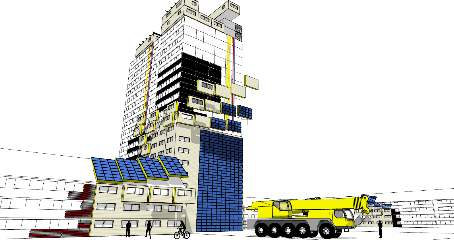 Das Ziel von diesem Forschungsprojekt ist die Entwicklung einer kosteneffizienten, kreislauffähigen und modularen Lösung für das notwendige Upgrading des Gebäudebestands durch Sanierung über die Gebäudehülle. Durch die Kombination serieller, multifunktionaler und CO2 neutraler Fassadenelemente mit integrierten energieaktiven Technologien und einer intelligenten Regelung soll dieses Ziel erreicht werden. An realen Objekten wird diese serielle adaptive Lösung minimal invasiv umgesetzt.